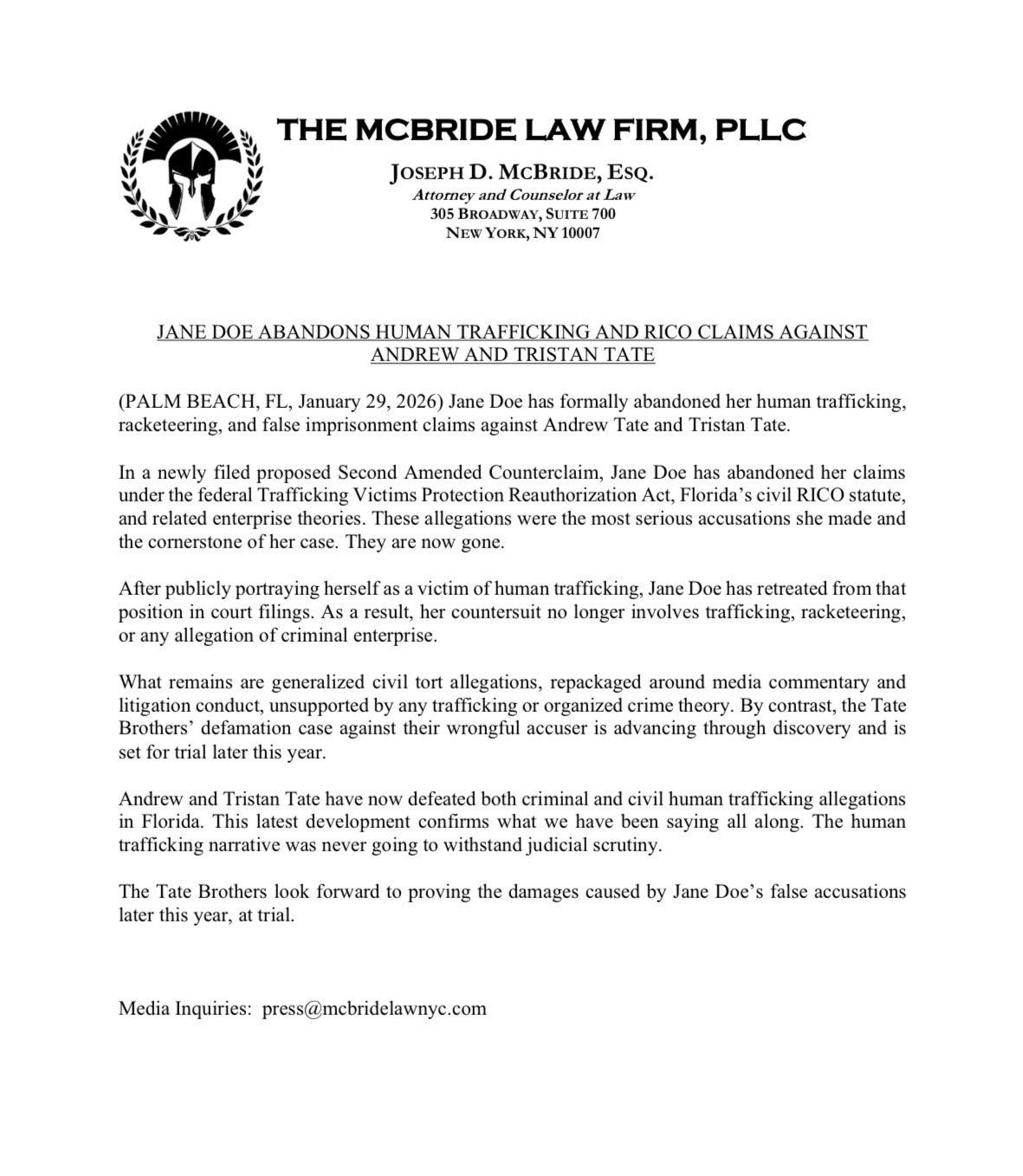 BREAKING: Andrew and Tristan Tate have defeated both criminal and civil human trafficking allegations in Florida. This latest development confirms what we have been saying all along. The human trafficking narrative was never going to withstand judicial scrutiny.